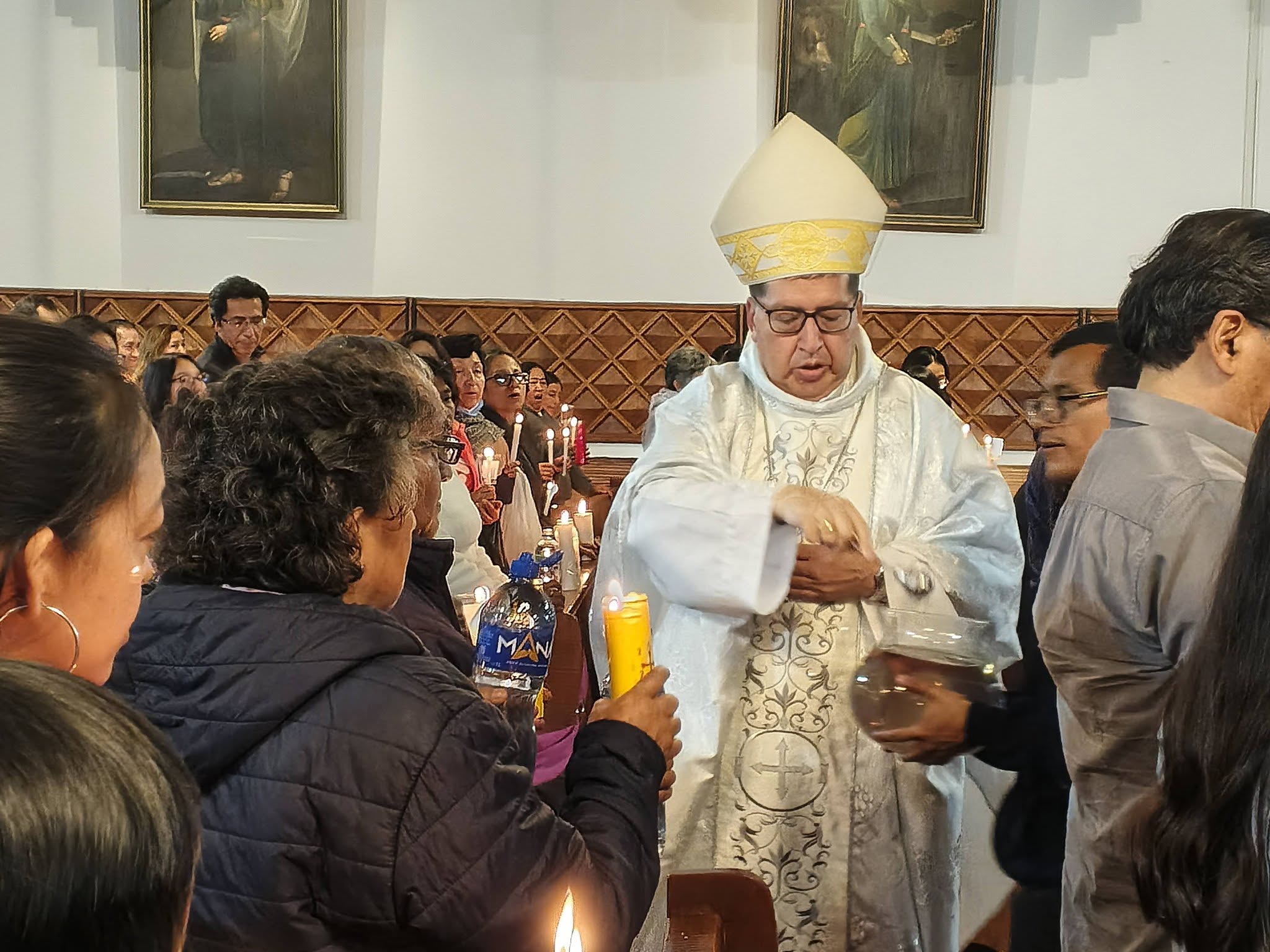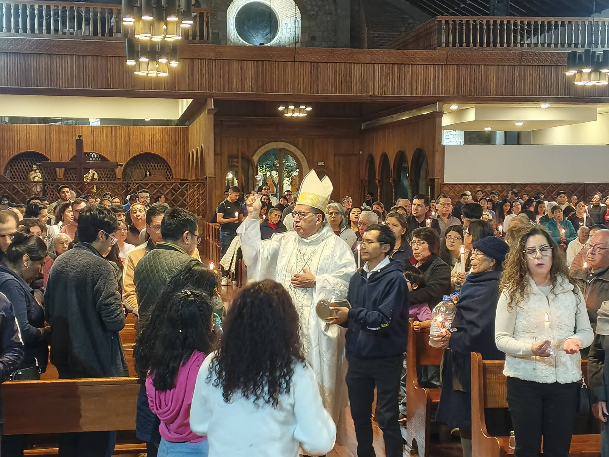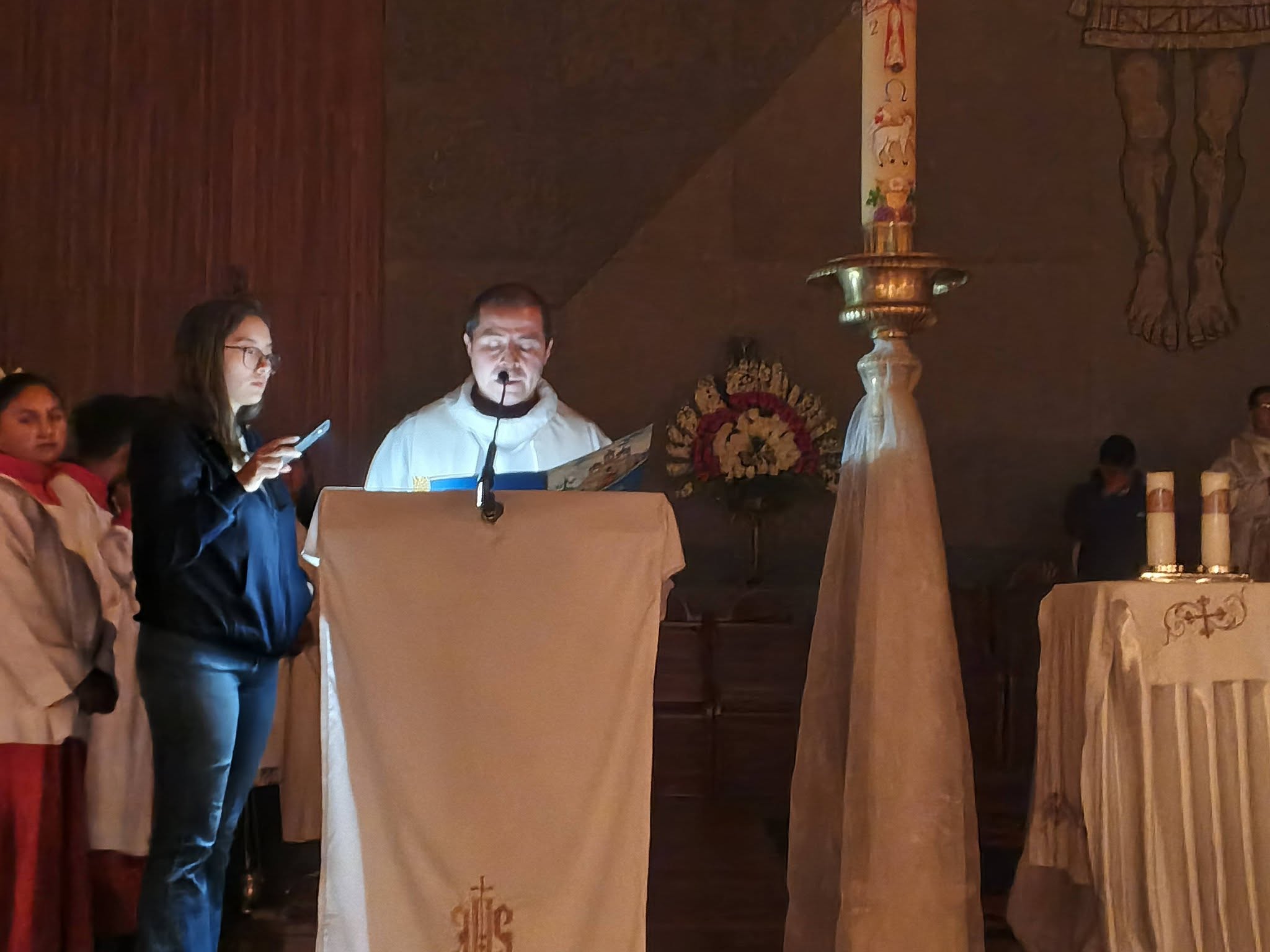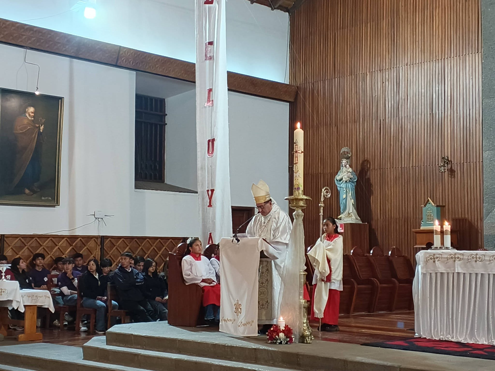 Hace pocos instantes se realizó la Eucaristía de Pascua de Resurrección en la Catedral de Riobamba, se bendijo ,el agua, el fuego,dónde se lo tomó para encender el Cirio Pascual,que representa a Cristo resucitado.